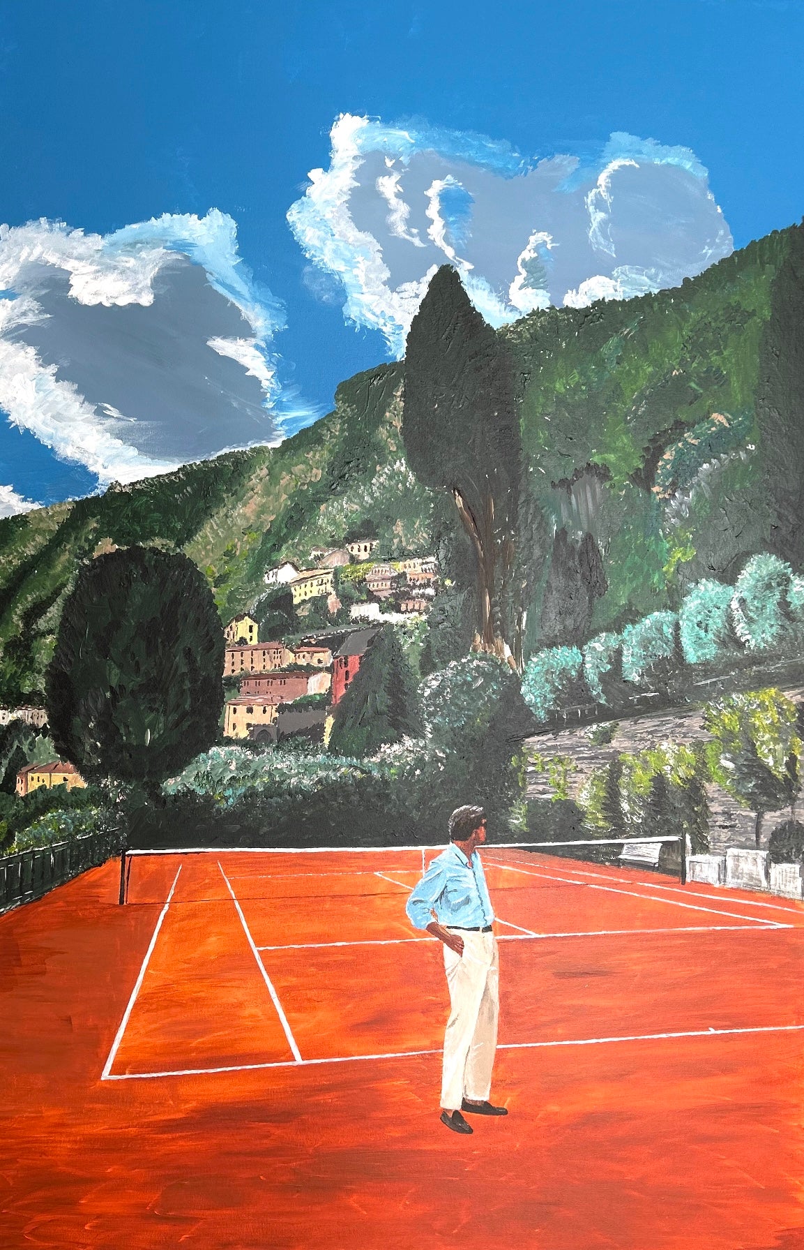 Una pista de tierra batida en silencio. El tenista, en pausa, no compite: piensa. El tenis aparece aquí como un ejercicio de estilo, donde la verdadera acción sucede en la espera.